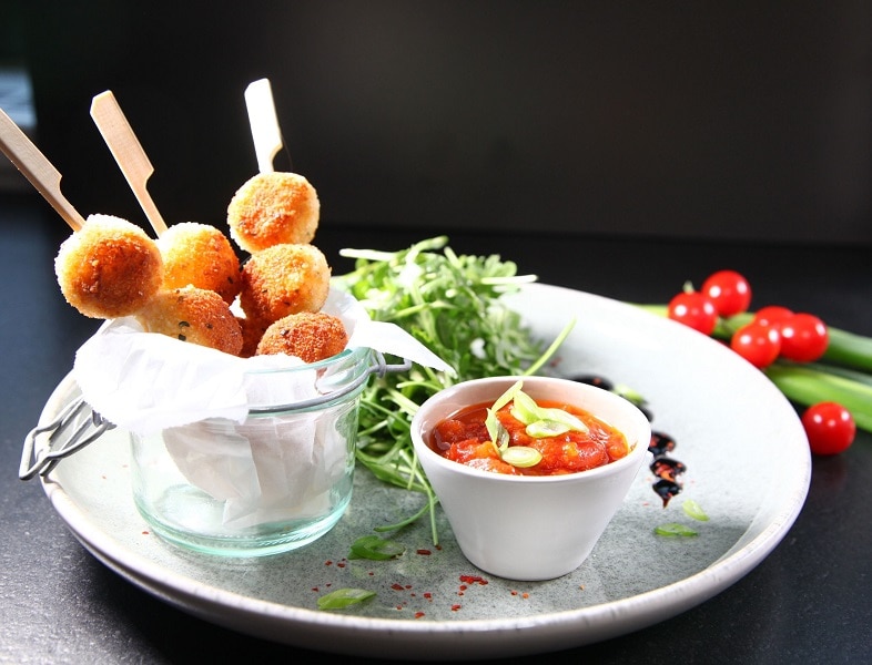 Les petites billes de mozzarella sont idéales pour les entrées de l'été et les amuse-gueules , elles peuvent être trempées dans la sauce tomate, que l’on servira à part, dans un ramequin. La roquette fraîche ou frite accompagne à merveille la mozzarella panée.